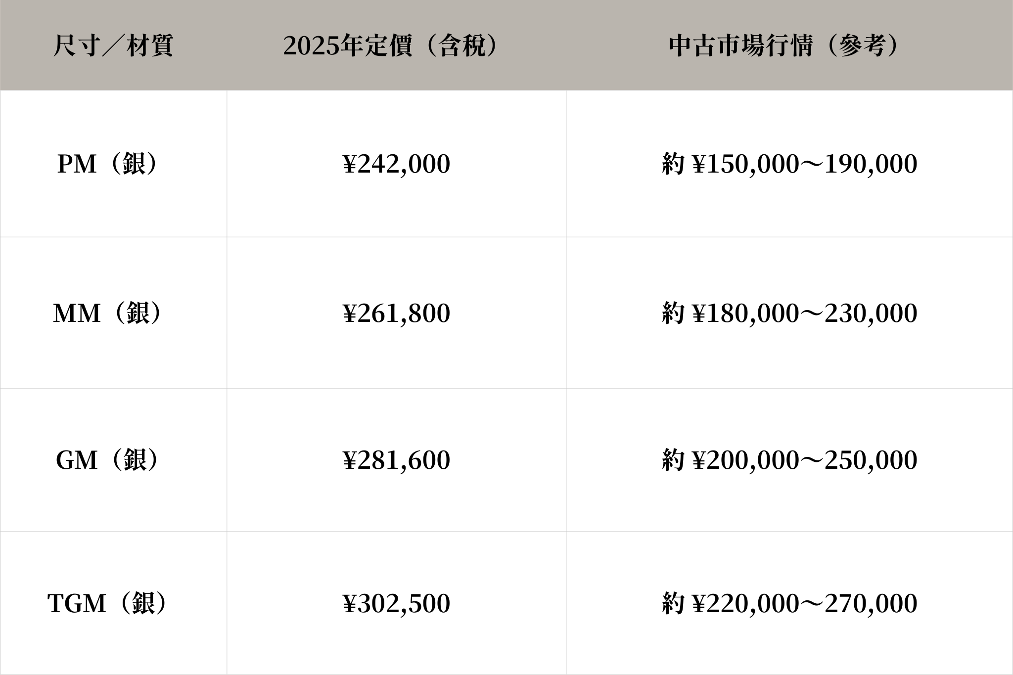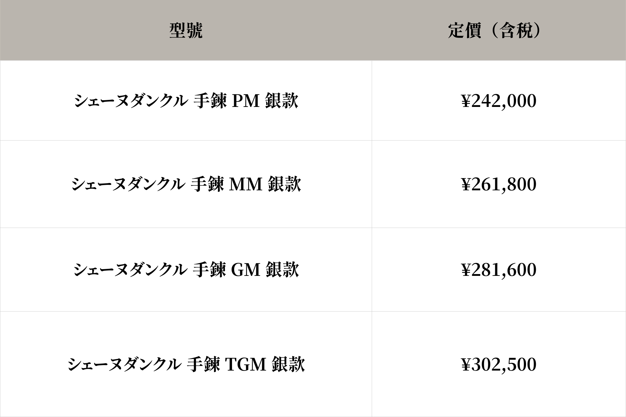 シェーヌダンクル的定價會依據尺寸與材質而異,截至2025年為止的參考售價如下: