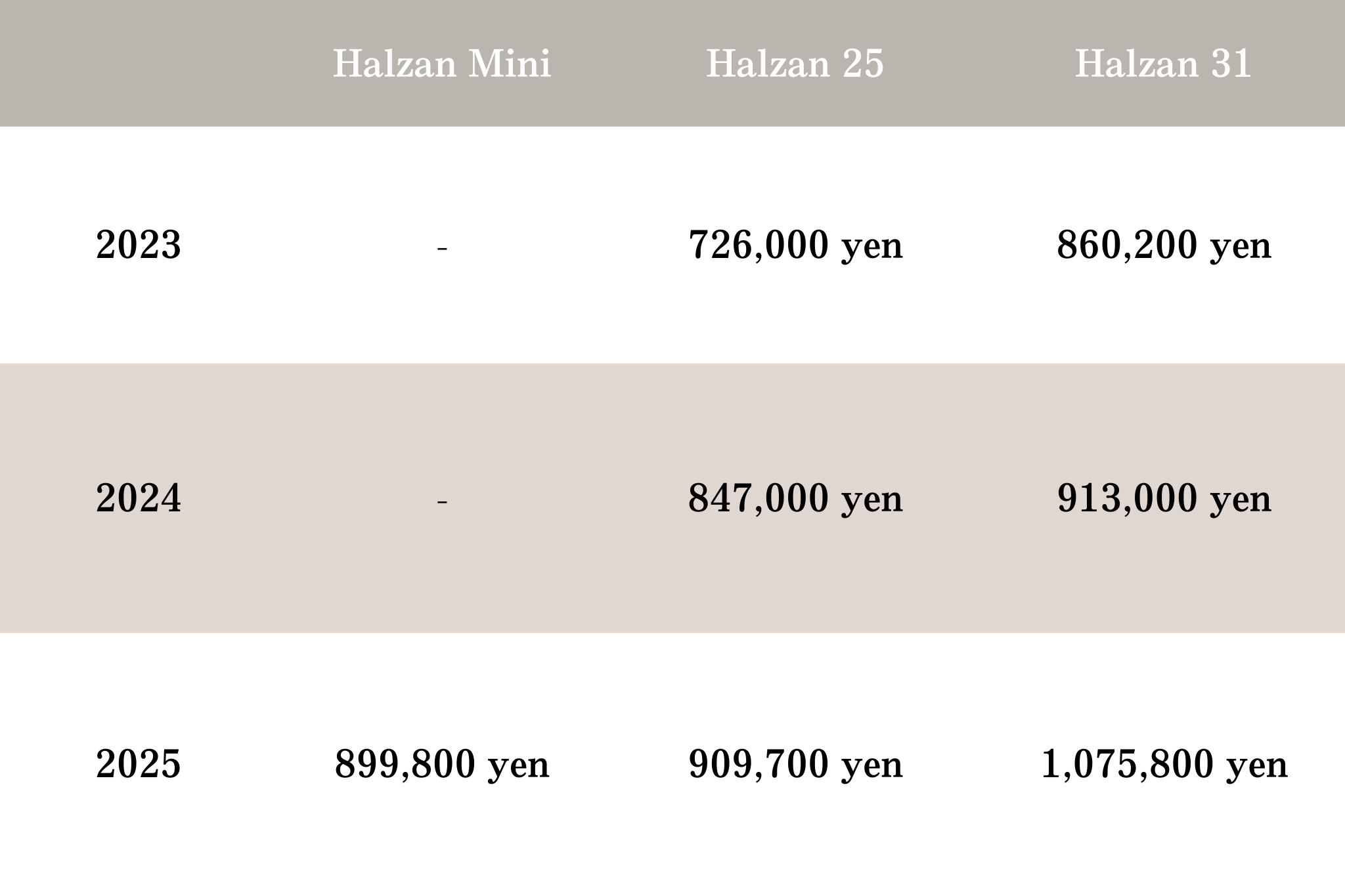 The retail price of the Halzan has been gradually increasing each year, in line with Hermès’ overall price adjustments. While prices vary depending on size and leather type, the general trend is as follows.