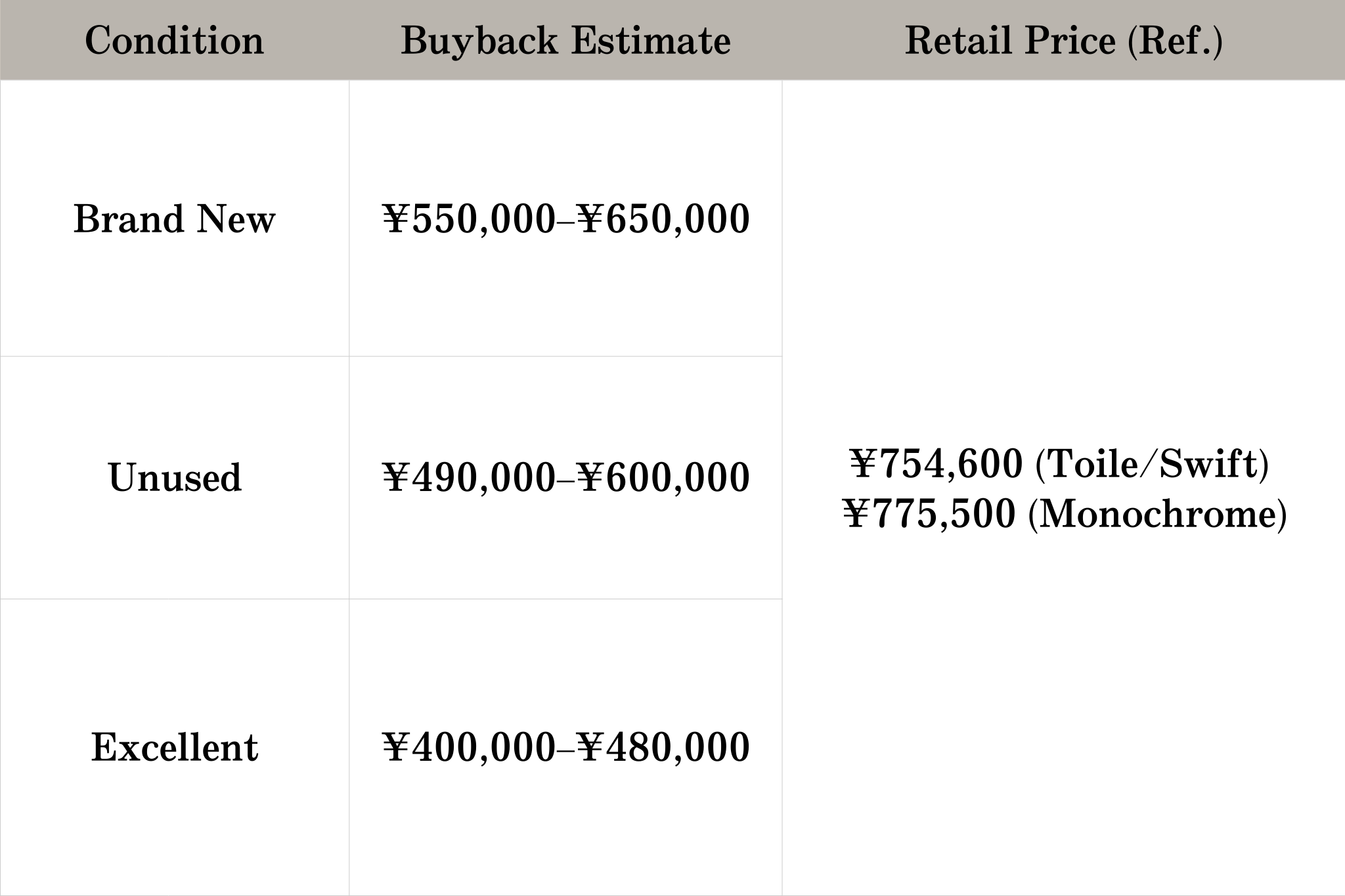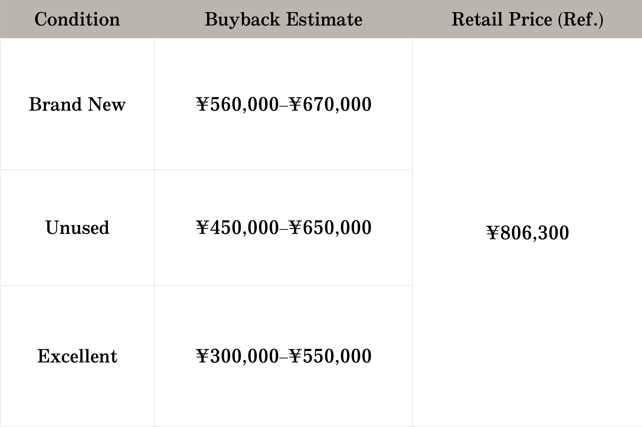 Since it’s hard to get from boutiques, many buyers turn to the pre-owned or resale market. Prices vary by condition and color, but here’s a breakdown of current sales and buyback price trends: