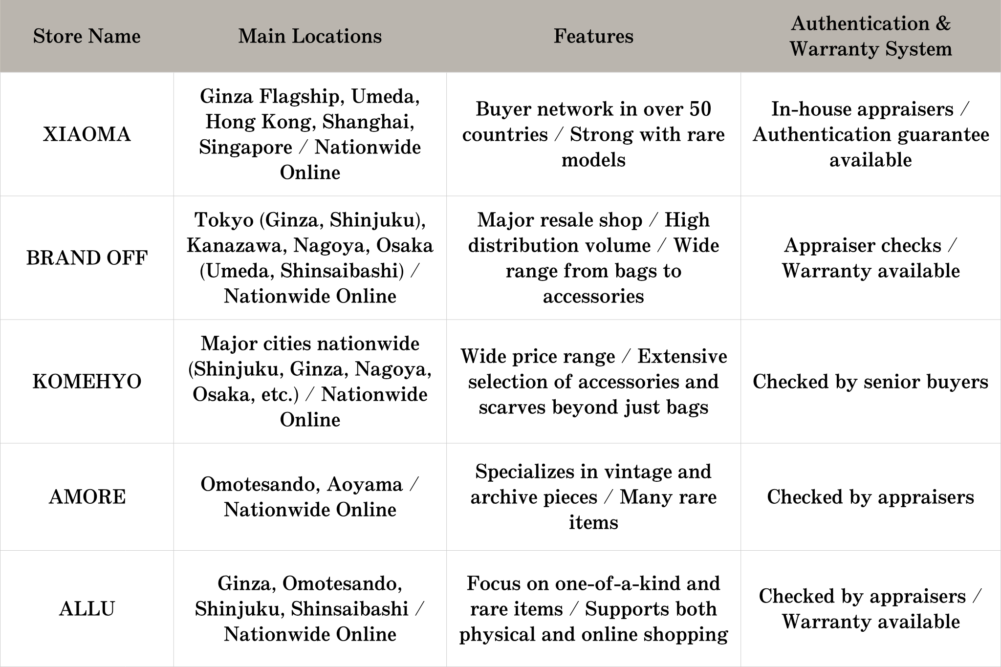 Secondhand Hermès stores are concentrated in Ginza and Tokyo, where the ability to check items in person is a significant advantage. For those living outside urban areas, choosing nationwide online shops allows safe purchases without visiting physical stores. Recently, return guarantees and shipping insurance have been well established, making it possible to buy with reduced risk even from remote locations.