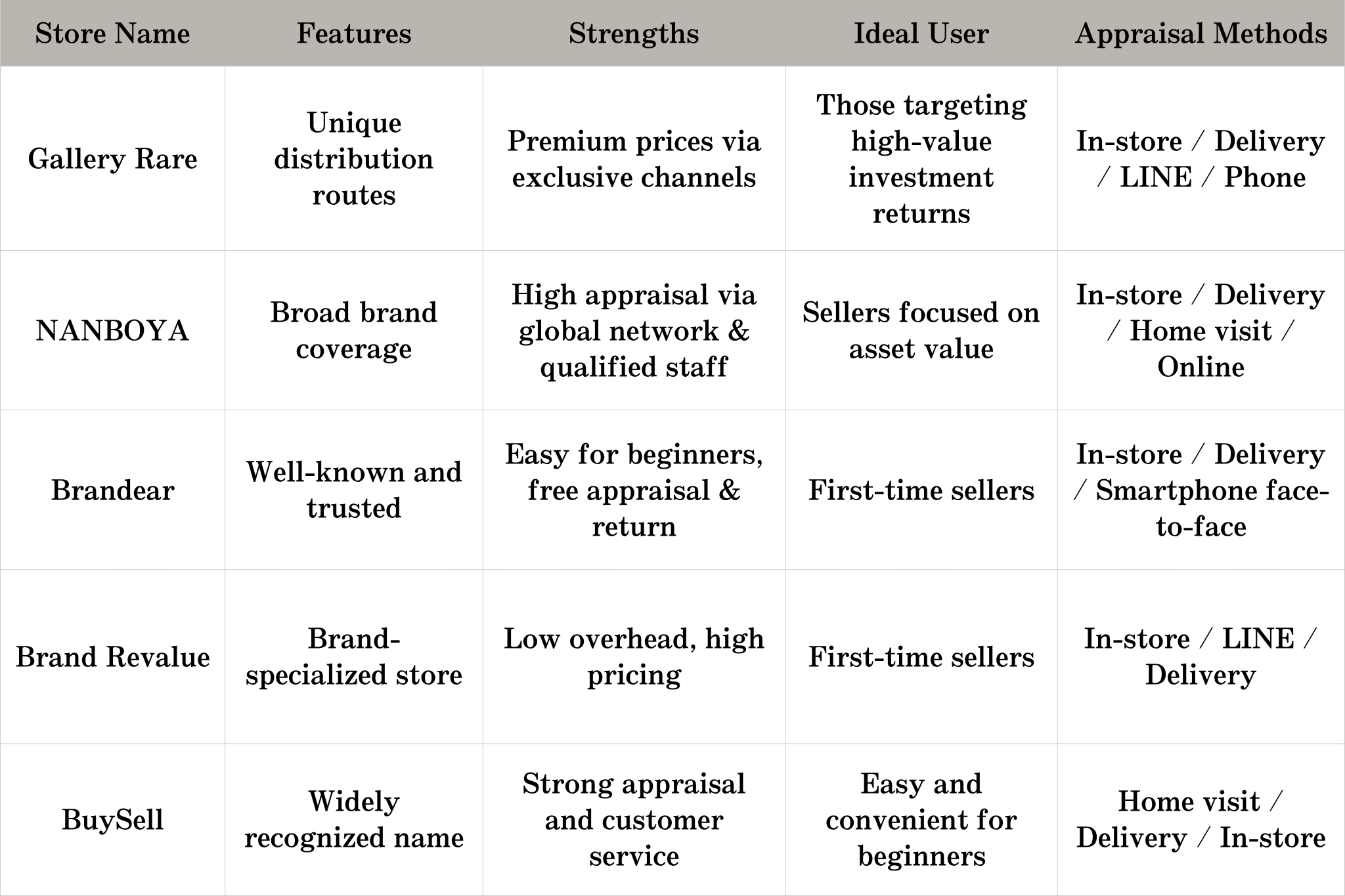 Stores offering pre-appraisals via LINE or online are also increasing, allowing you to compare offers and choose the best buyer for your needs.