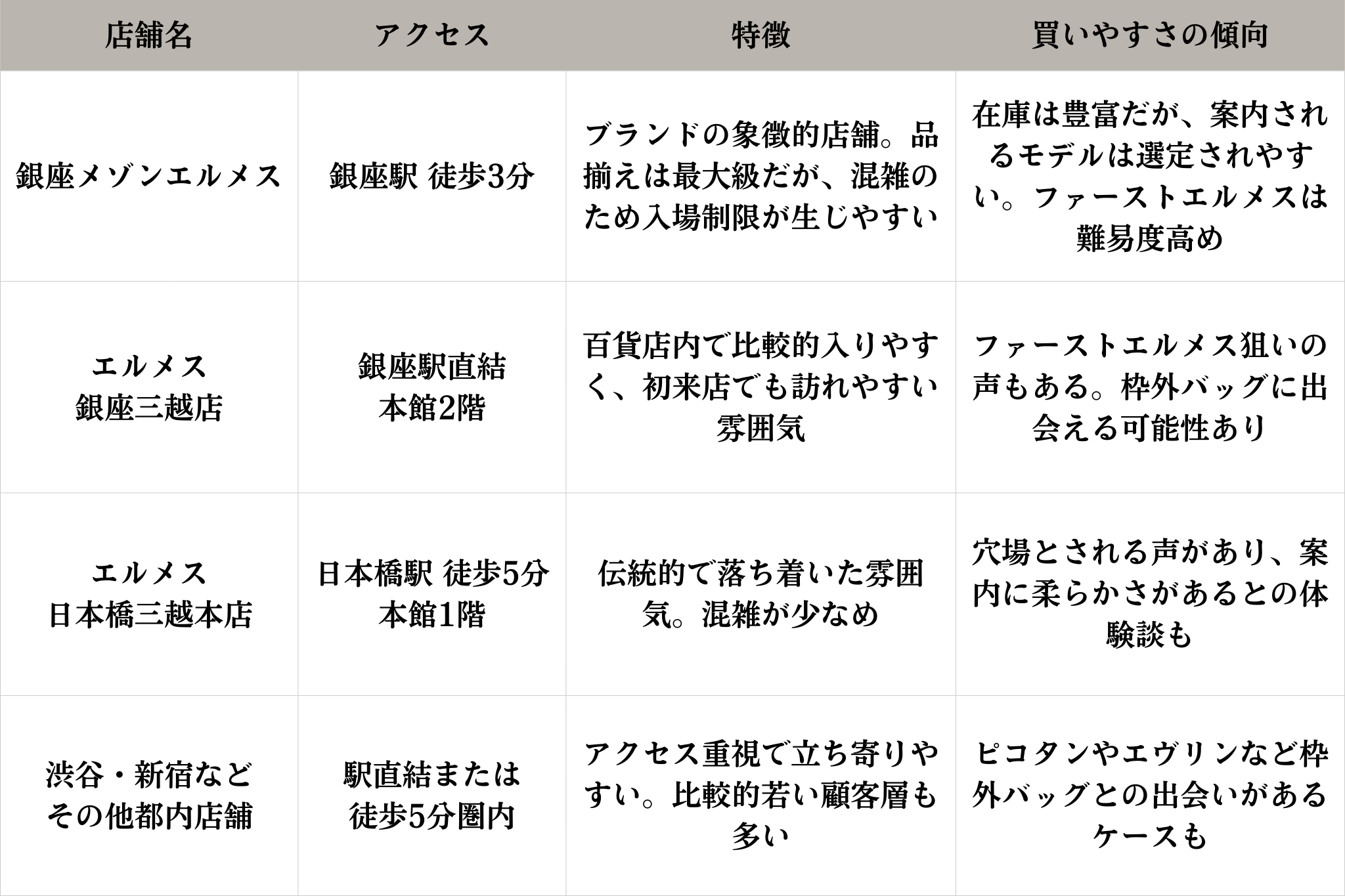この記事では、東京にあるエルメス主要店舗の特徴を比較し、それぞれの「買いやすさ」を整理しました。