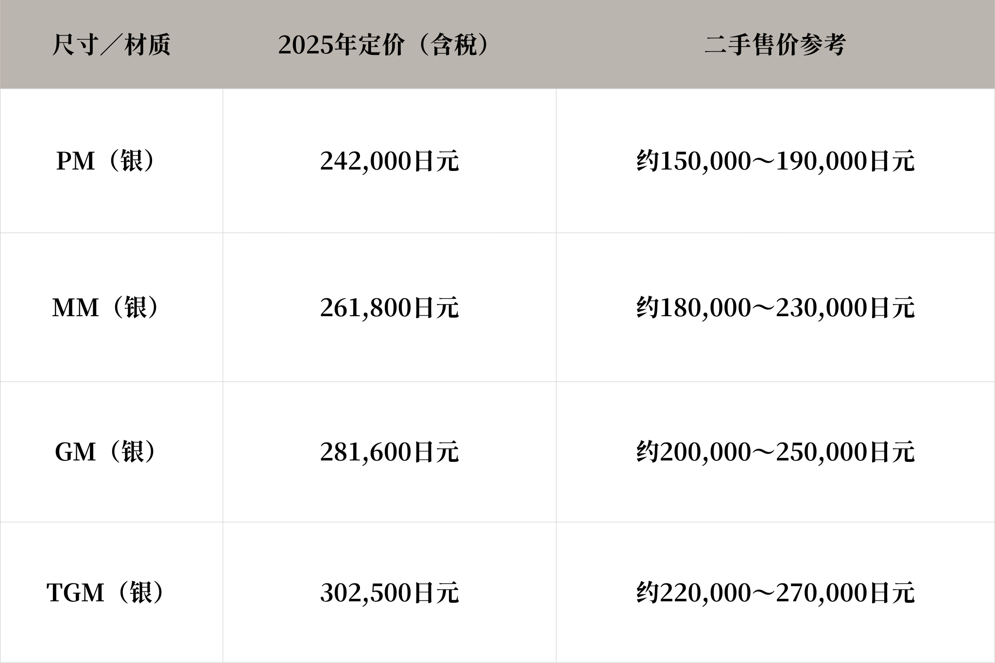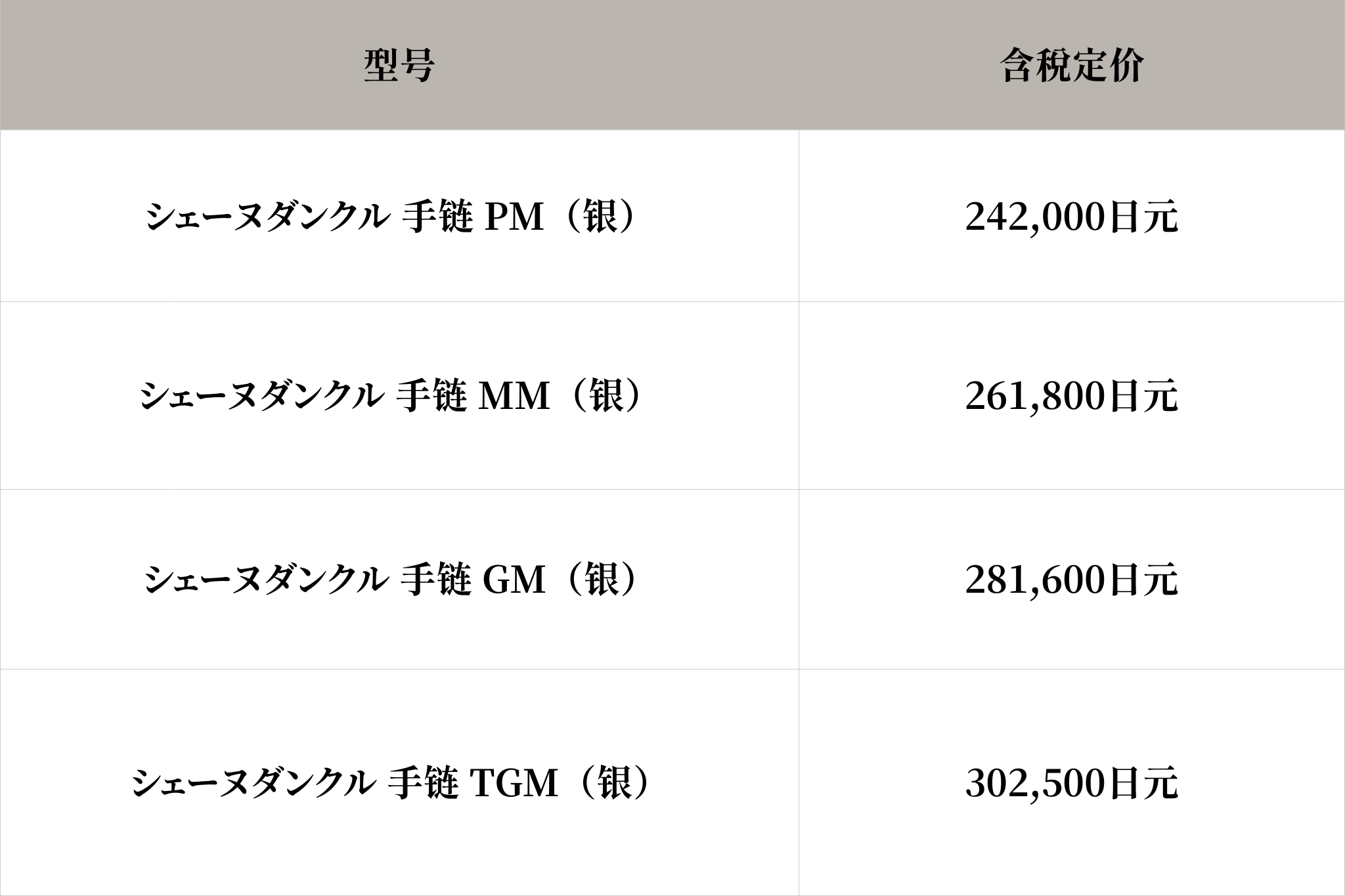 根据尺寸与材质不同,シェーヌダンクル的售价也有所差异。以下是截至2025年的价格参考: