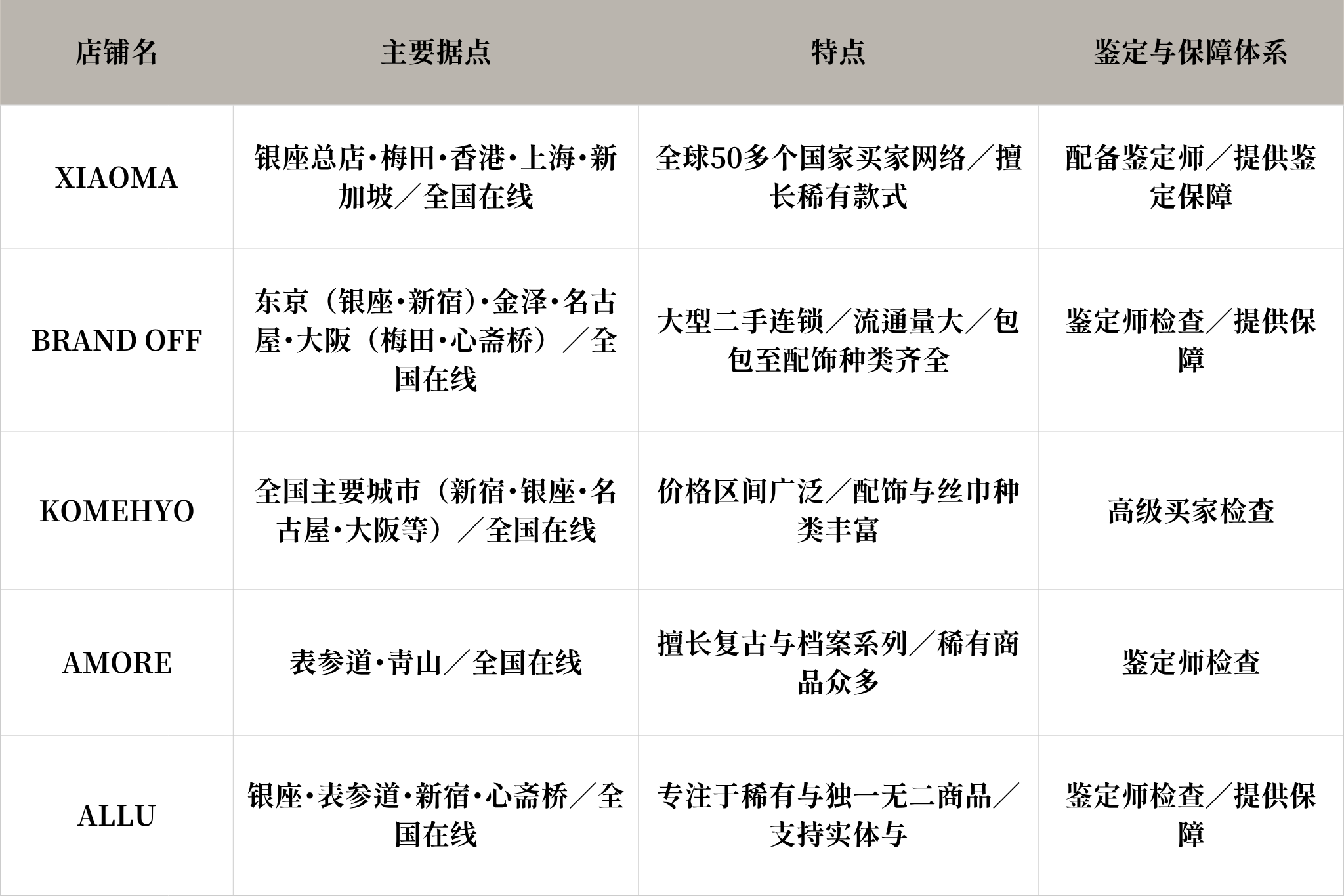 门店位于表参道与青山,主营爱马仕等高级品牌的包包、配饰以及档案系列商品