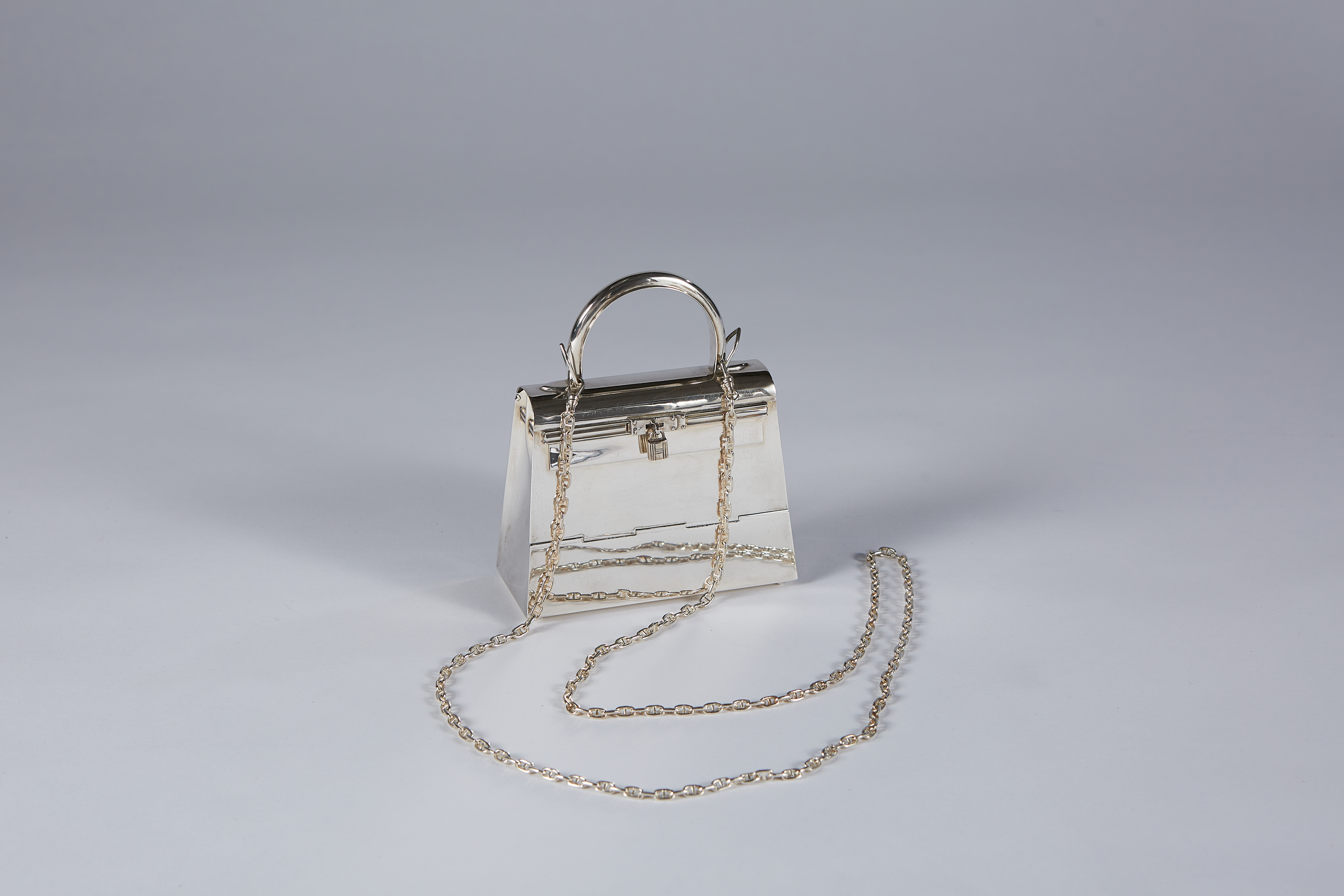 More than a luxury fashion accessory, this Silver Micro Kelly is a bold and playful exploration of scale, material, form, and refinement. By translating a house icon of leather artisanship into precious metal, Hermès elevates the Kelly into the realm of sculptural collectible — an abstracted, timeless creation that belongs as much in a display cabinet or museum context as wearable art.